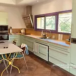 Ce logement comprend un coin repas avec un micro-ondes, un réfrigérateur et de la vaisselle. Cette propriété est également située à quelques instants de l'arrêt de bus Mas d'Alesti.